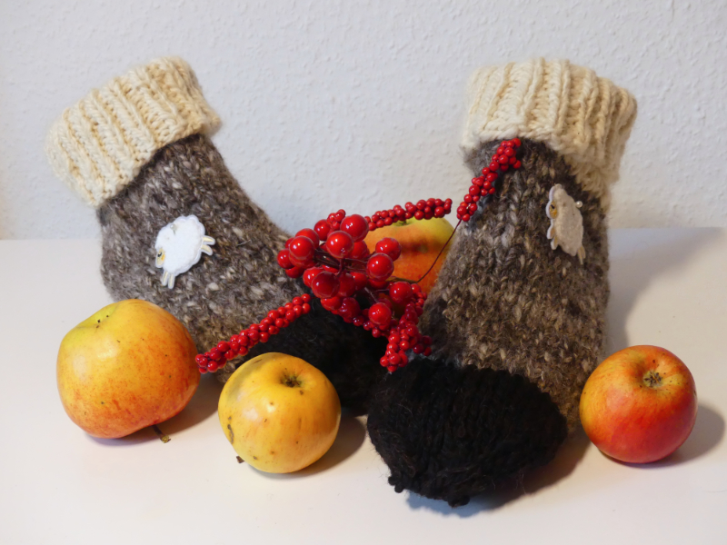 Für die Hüttenschuhe hatte ich Wolle vom Jacobsschaf geordert. Sie ist recht stabil, aber trotzdem weich. Es muss alles schließlich wieder ein Jahr halten.